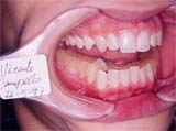 Ao posicionar a mandíbula em miocêntrica, através da mordida construtiva em acrílico, observamos que a oclusão dos elementos 13/43 ficou de topo, fato este que nos abriu a perspectiva de introduzir um acessório para descruzar mais rapidamente estes elementos. |